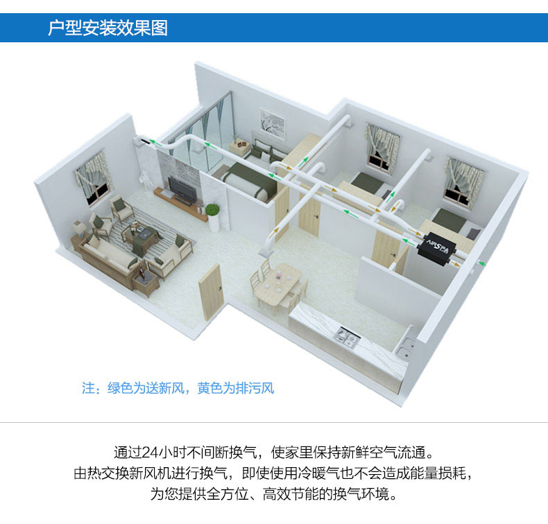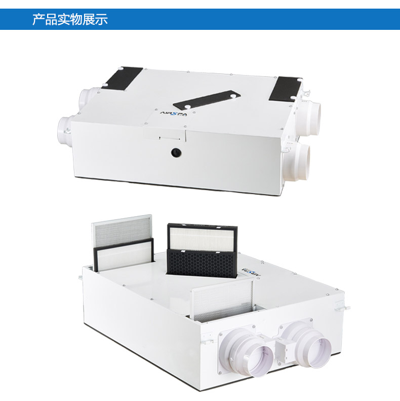 雙向流新風(fēng)機(jī):訂機(jī)采用雙核動力設(shè)計(jì),動力強(qiáng),體積??;采用直流無刷電機(jī),低噪音,低能耗
