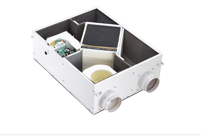 高能效比:采用水平進排風,具非常高的能效比,可回收70%以上能量 高效過濾:采用歐洲標準H13級過濾,多重過濾;PM2.5過濾99%以上 雙向流新風機:訂機采用雙核動力設計,動力強,體積?。徊捎弥绷鳠o刷電機,低噪音,低能耗
